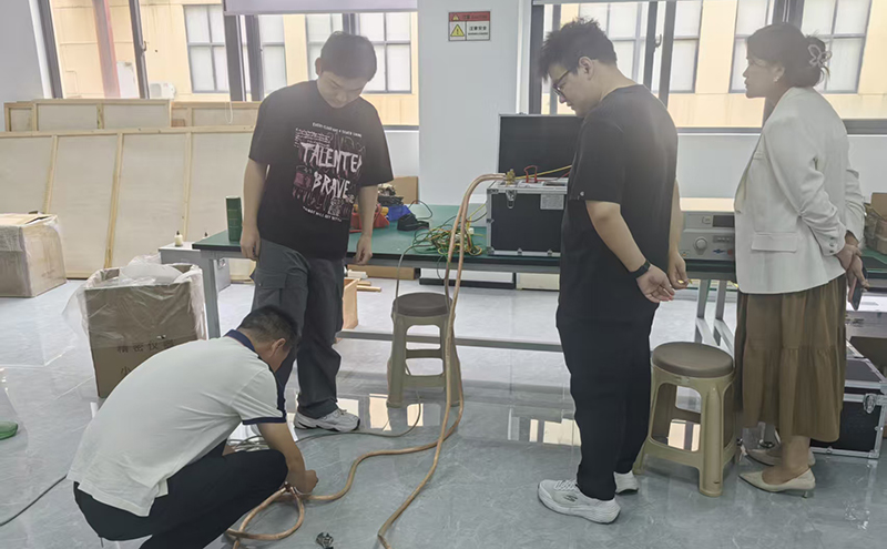 第二站:生產(chǎn)車(chē)間——見(jiàn)證制造匠心隨后,技術(shù)人員陪同嘉賓走進(jìn)生產(chǎn)車(chē)間。我們向來(lái)賓簡(jiǎn)要說(shuō)明了高壓諧振電抗器、超高壓耐壓測(cè)試儀等產(chǎn)品的組裝與調(diào)試。希望通過(guò)呈現(xiàn)有序的生產(chǎn)現(xiàn)場(chǎng)和嚴(yán)謹(jǐn)?shù)淖鳂I(yè)流程,讓代表團(tuán)感受到凱迪對(duì)產(chǎn)品品質(zhì)的切實(shí)追求與保障能力。